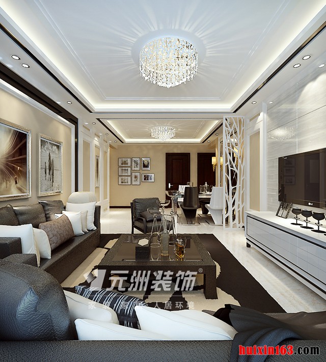 亲水湾龙园-125平米三居室-现代简约装修效果图-客厅
