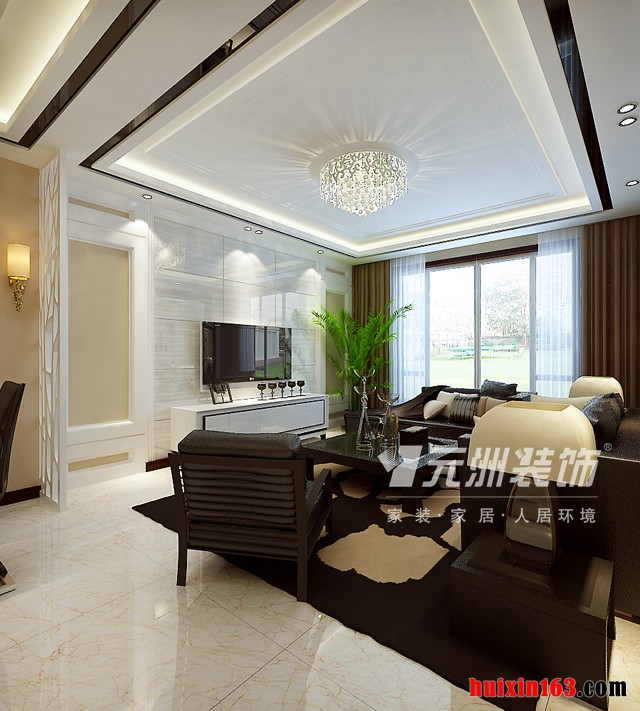 ![]() 亲水湾龙园-125平米三居室-现代简约装修效果图-客厅