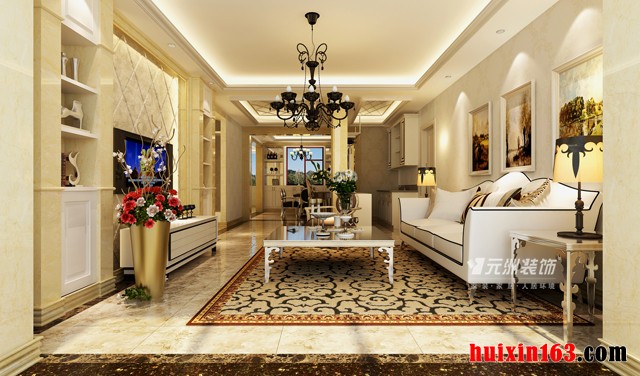 ![]() 亲水湾龙园-170平米三居室-简欧风格装修效果图-客厅