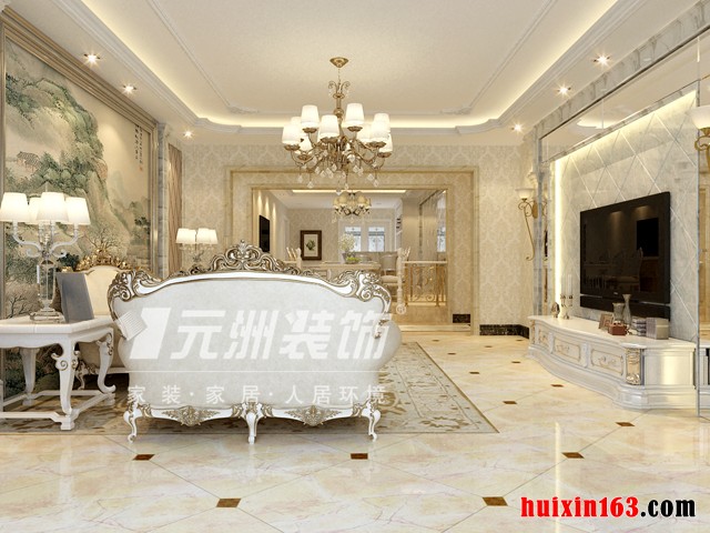 御锦源-260平米四居室-简欧风格装修效果图-客厅