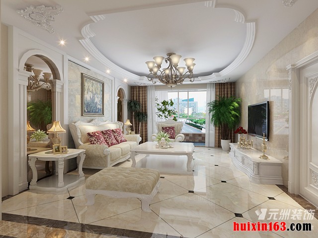 御锦源-174平米三居室-简欧风格装修效果图-客厅