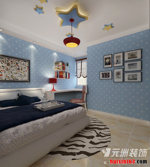 大秦佳苑,107平米三居室,采用现代简约的装修风格,对于我们的居住空间而言,不同的人对家庭的需求也各不相同,所以在居室的装修上也有所差异,在本案例的设计当中,其客厅采用的是平顶式的石膏板吊顶,背景色彩同样是以白色的大众色彩为主,搭配上一盏个性、精致却又显得华丽的水晶吊灯,让这个简洁的环境处处充满创意与艺术,别致的地毯,曲线的流畅感以及沙发背景墙三幅壁画的悬挂,都突出一种艺术氛围;反观儿童房的设计,不管是造型的设计还是色彩的搭配,都体现出父母的关爱与关心,吊顶上五角星的装饰,吊灯的灯光强度适中,天蓝色的墙纸铺贴,无疑不彰显出父母满满的爱。